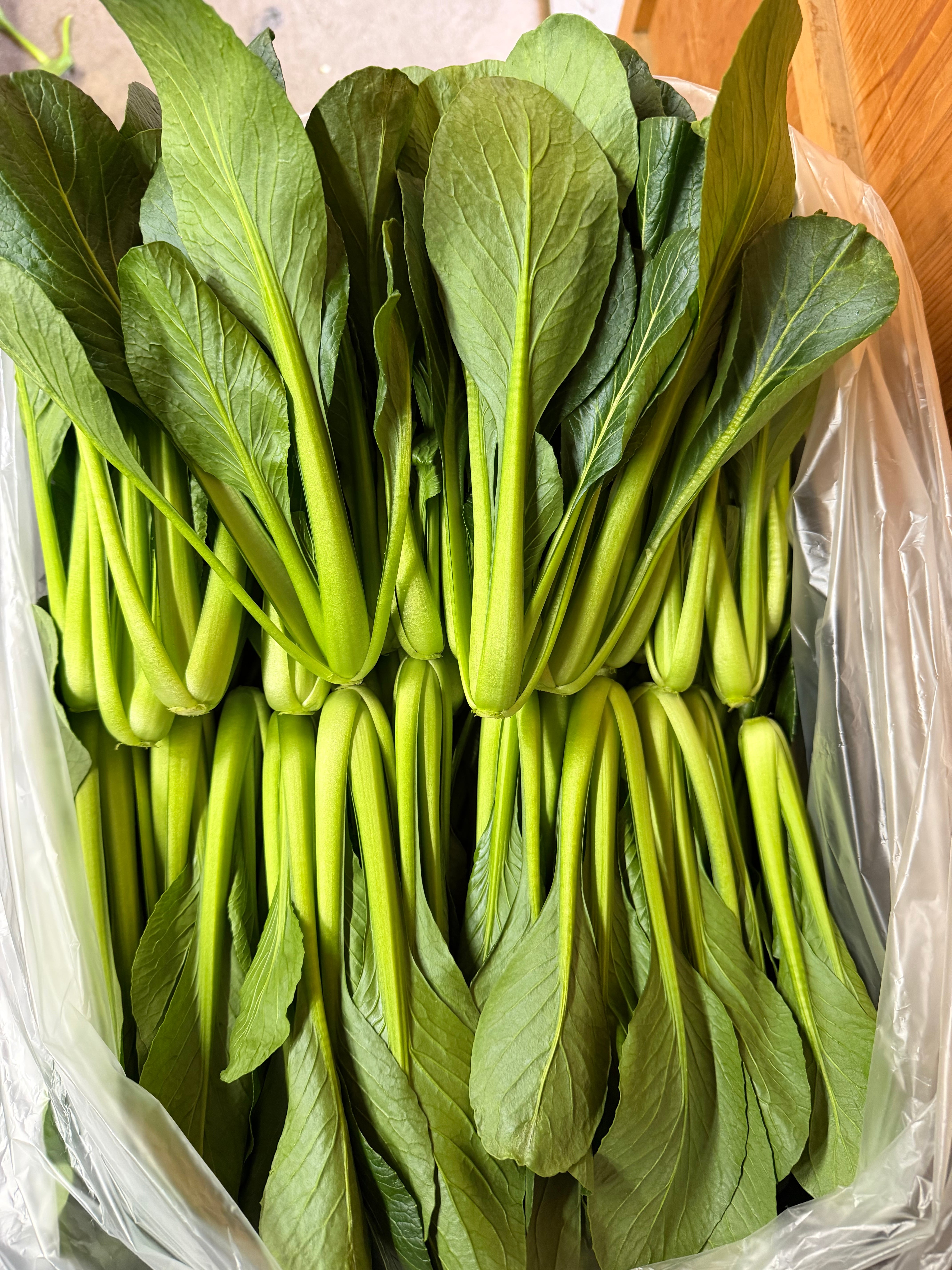 小松菜 朝の冷え、日中の暖かさにより引き締まる旨さ。小松菜はあっさりとしたナムルやお浸しお味噌汁、メイン料理のチジミやお肉と炒め物に。